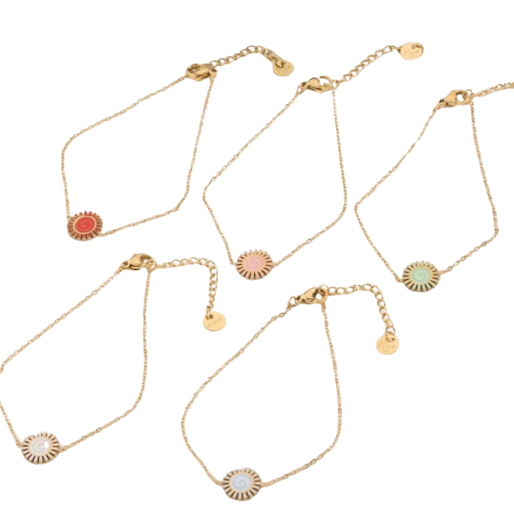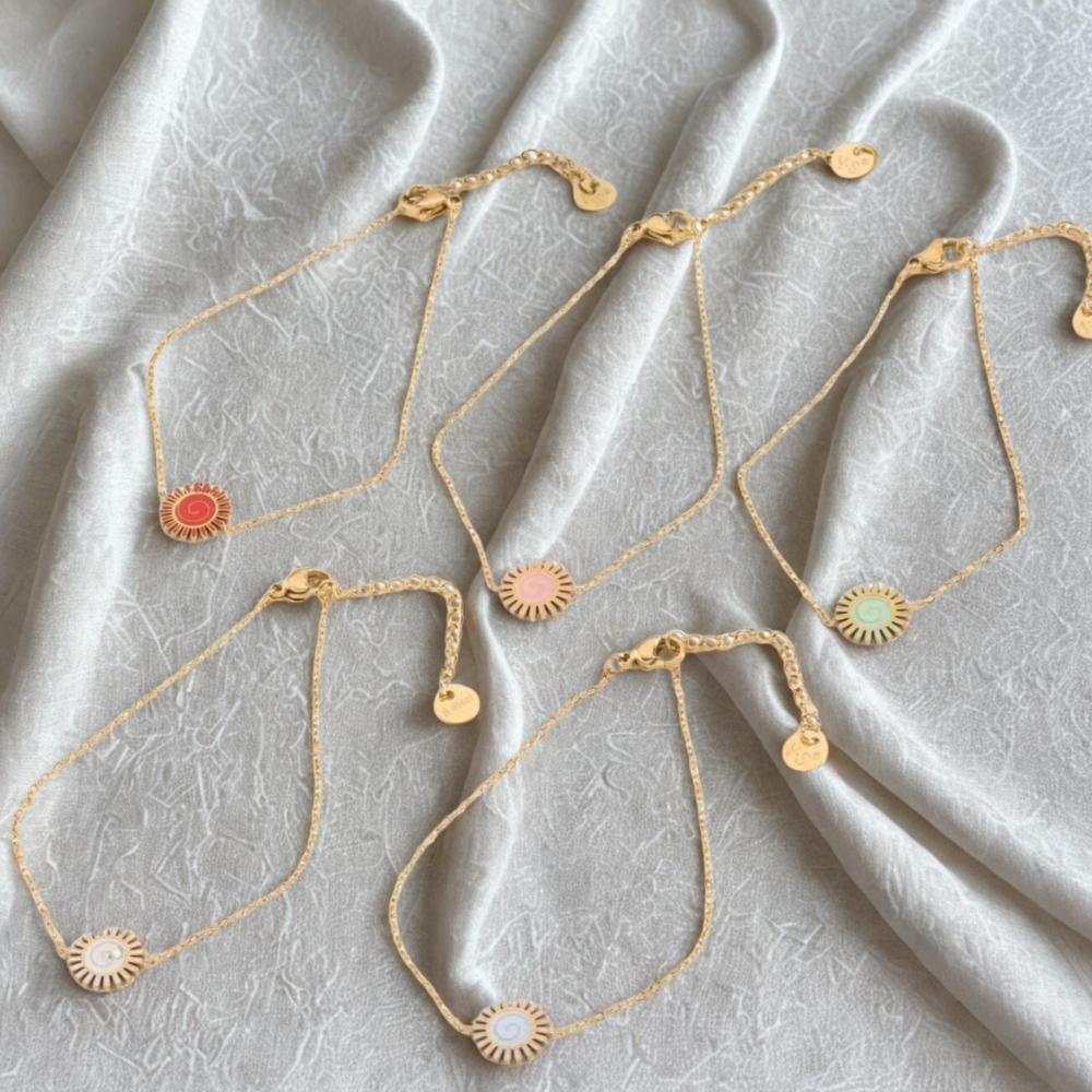 Pulsera dorada en forma de sol. Un símbolo de energía, luz y conexión interior.